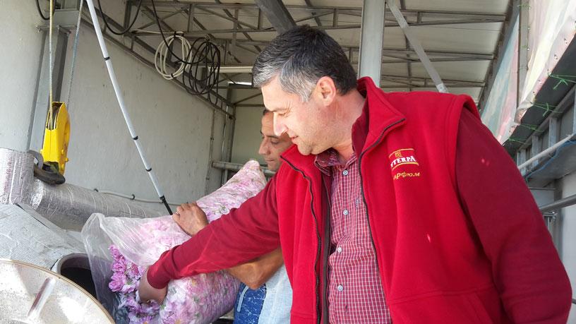 Розовото масло се получава чрез водно-парна дестилация от цветовете на маслодайните рози, принадлежащи към сем. Rosaceae. Розовото масло в Евтерпа се получава от обгрижваните маслодайни рози от сорта Rosa damascena Mill в розовите масивите на Евтерпа.